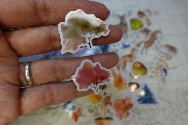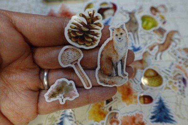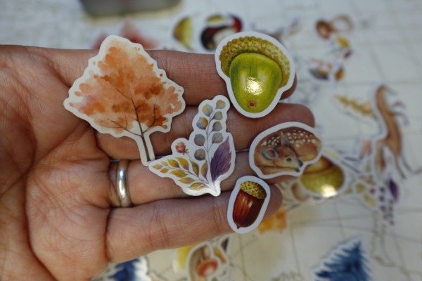 motivos: animalitos del bosque, arboles y hojas