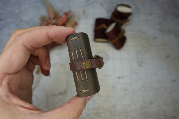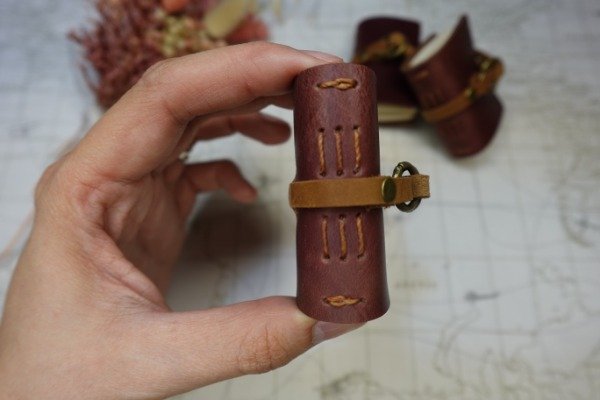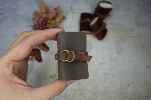 Hecho de cuero con 3 mini cuadernillos tapa kraft o de tela a elección, cosidos a mano, con su cinturón y herrajes. 60 páginas de diversión!