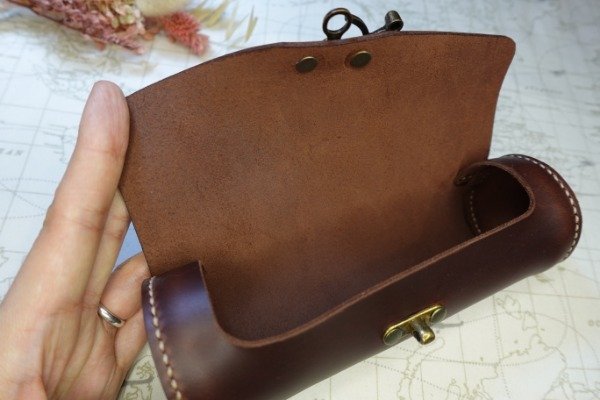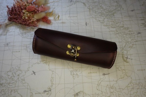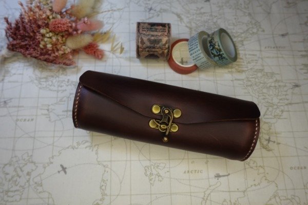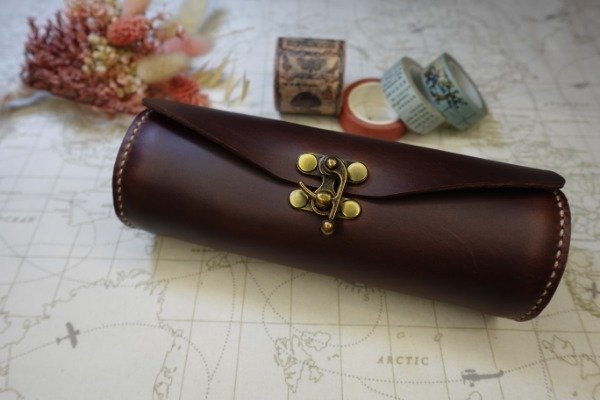 Estuche circular confeccionado en cuero vacuno (ideal Washitapes)